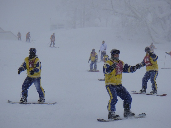 生徒の多くは初心者ばかりでしたが、インストラクターの方々の丁寧な指導により山頂からでも滑って降りられるようになりました。