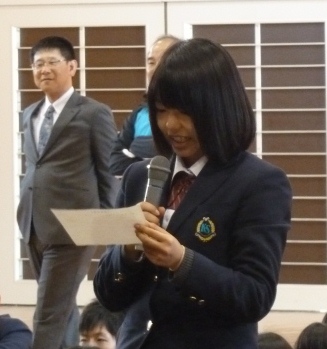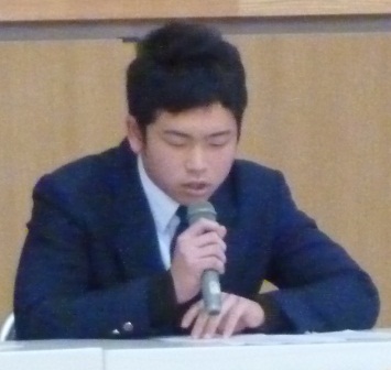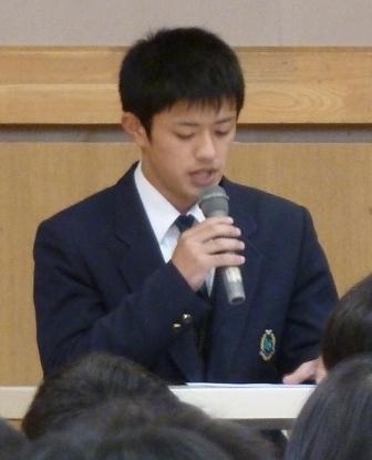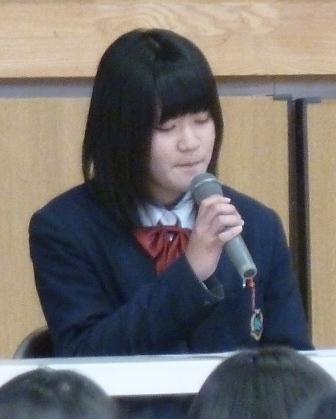 ◎発表者:3年A組 山下 沙織 さん 3年B組 舩尾 梨名 さん 3年C組 高渕 和真 君