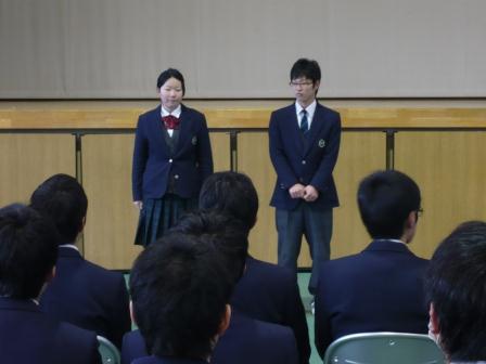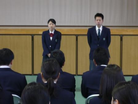 3月1日(金)の第110回卒業証書授与式を前に、同窓会「吸江会」への入会式が