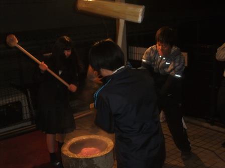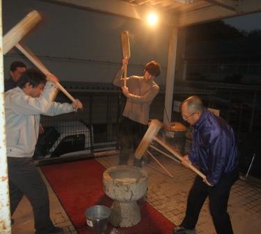 2月27日(水)17時からPTAの方々が食堂に集まり『卒業生を祝福する紅白の餅つき』を行いました。