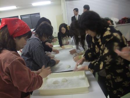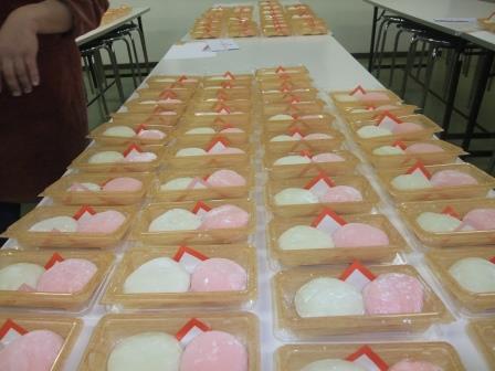 まかないのうどんやおにぎりで元気もりもり。紅白餅の完成です。